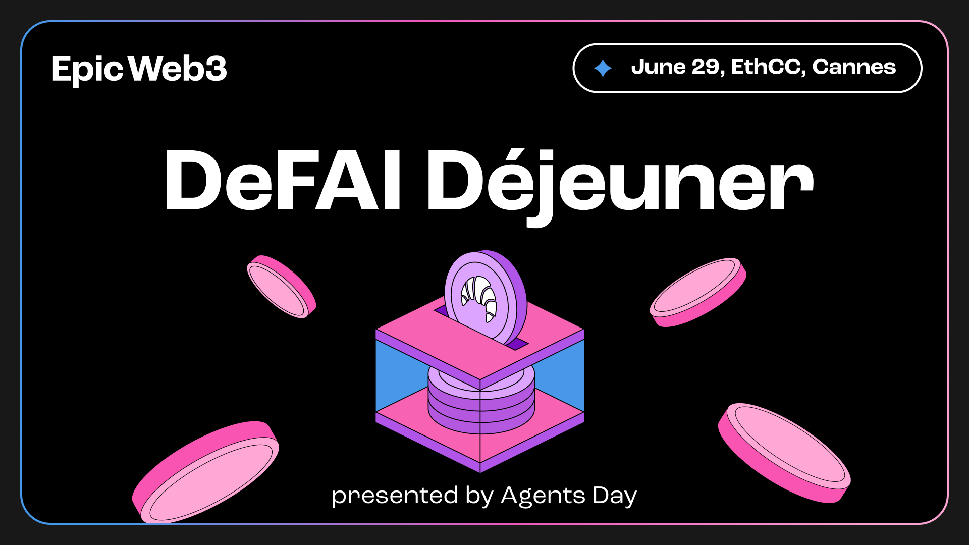 – Two tracks: DeFAI (AI‑driven DeFi, VC takes, market efficiency & liquidity) + Agents Day (autonomous systems, data, dApps)